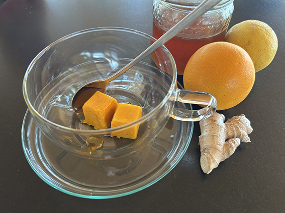 Bei Bedarf einfach ein bis zwei Eiswürfel in eine Tasse geben und etwas (warmes) Wasser dazu geben. Bei Bedarf mit Honig süßen, umgehend genießen und gesund bleiben :-).