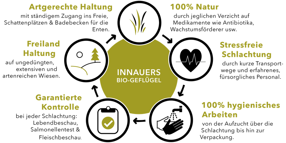 Das Bio-Futter, welches sie zusätzlich zu unserem Gras bekommen, beziehen wir gänzlich aus Österreich. Für die liebevolle und artgerechte Haltung unseres Bio-Geflügels wurden wir mit dem Vorarlberger Tierschutzpreis ausgezeichnet.